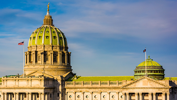 Evening light on the Pennsylvania State Capitol in Harrisburg, P